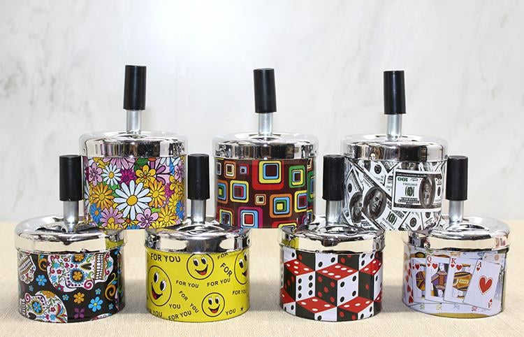 Küçük Boy Metal Renkli Basmalı Küllük Yuvarlak