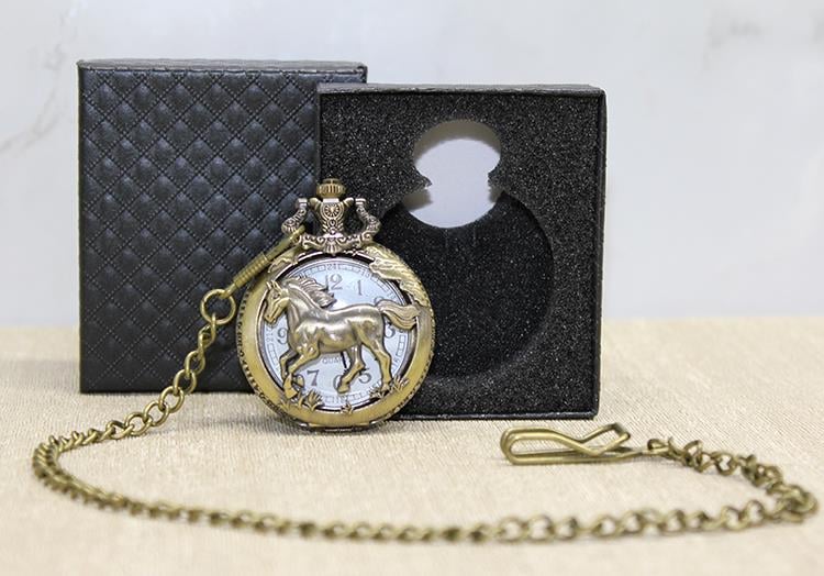 Özel Kutulu At Tasarımı Köstekli SaatAt figürüyle zarif bir detay kazanan Özel Kutulu At Tasarımı Köstekli Saat , estetik ve nostaljiyi bir arada sunar. Küçük boyutuyla cepte ya da kolometrede taşınabilecek yapıda, özel kutusuyla hediye vermeye hazır bir seçenek. Vintage severler için koleksiyonluk ya da dekoratif amaçla mükemmeldir.Ürün Özellikleri Boyut: 4 × 5 cm  Model: Köstekli cep saati, at figürlü kapak tasarımPaket İçeriği 1 adet Özel Kutulu At Tasarımı Köstekli Saat