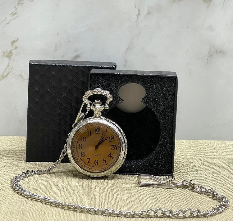 ÖZEL KUTULU CAMLI GÜMÜŞ KÖSTEKLİ SAAT Ürün Özellikleri Özel kutulu camlı gümüş köstekli saat, klasik şıklığı ve zarif tasarımıyla dikkat çeken bir modeldir. 4x5 cm boyutunda olan bu köstekli saat, camlı ön yüzü sayesinde zamanı net bir şekilde gösterirken, gümüş renkli gövdesi ile nostaljik bir hava sunar. Dayanıklı metal yapısı uzun süreli kullanım sağlarken, zinciri ile birlikte pratik kullanım imkânı sunar. Özel kutusunda sunulması sayesinde hem koleksiyonluk hem de hediye alternatifi olarak tercih edilebilir. Paket İçeriği 1 adet Özel Kutulu Camlı Gümüş Köstekli Saat